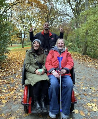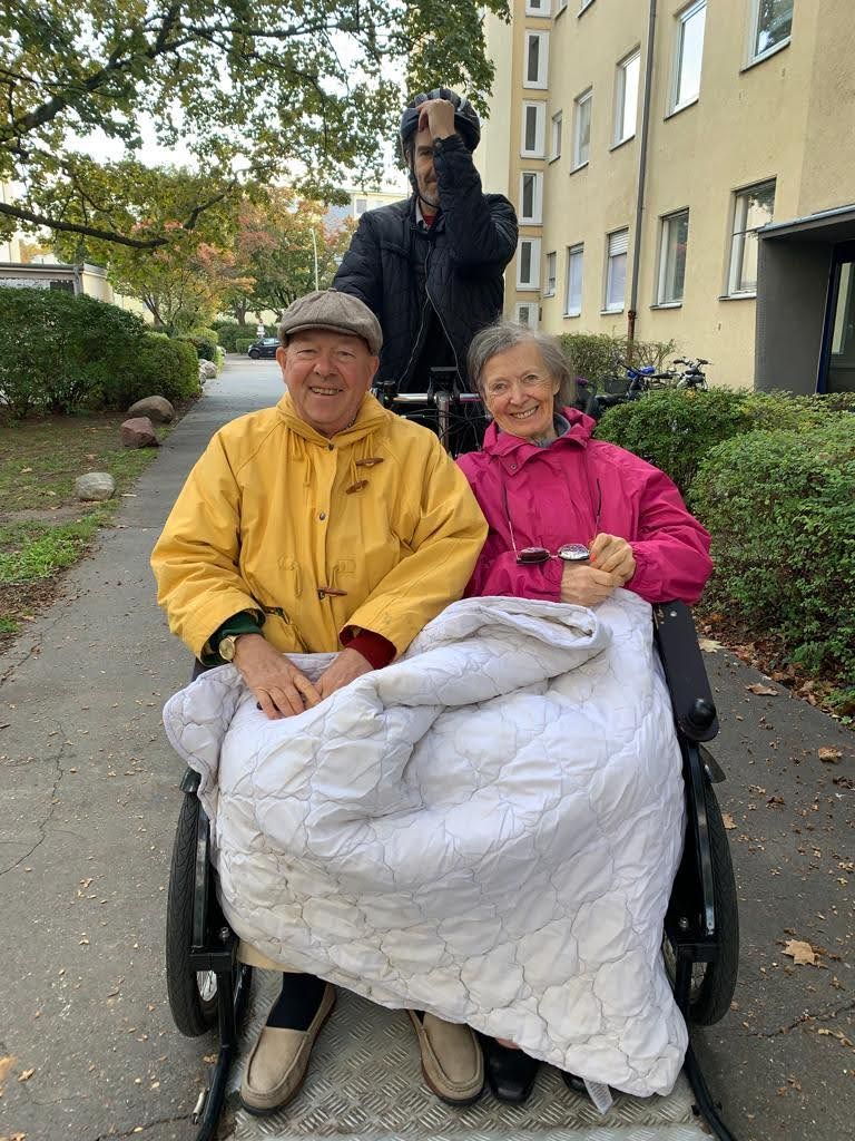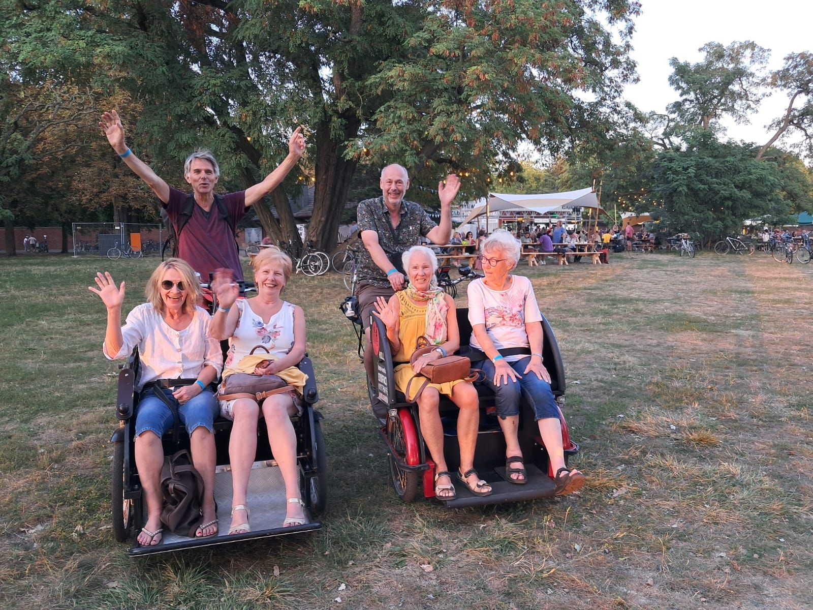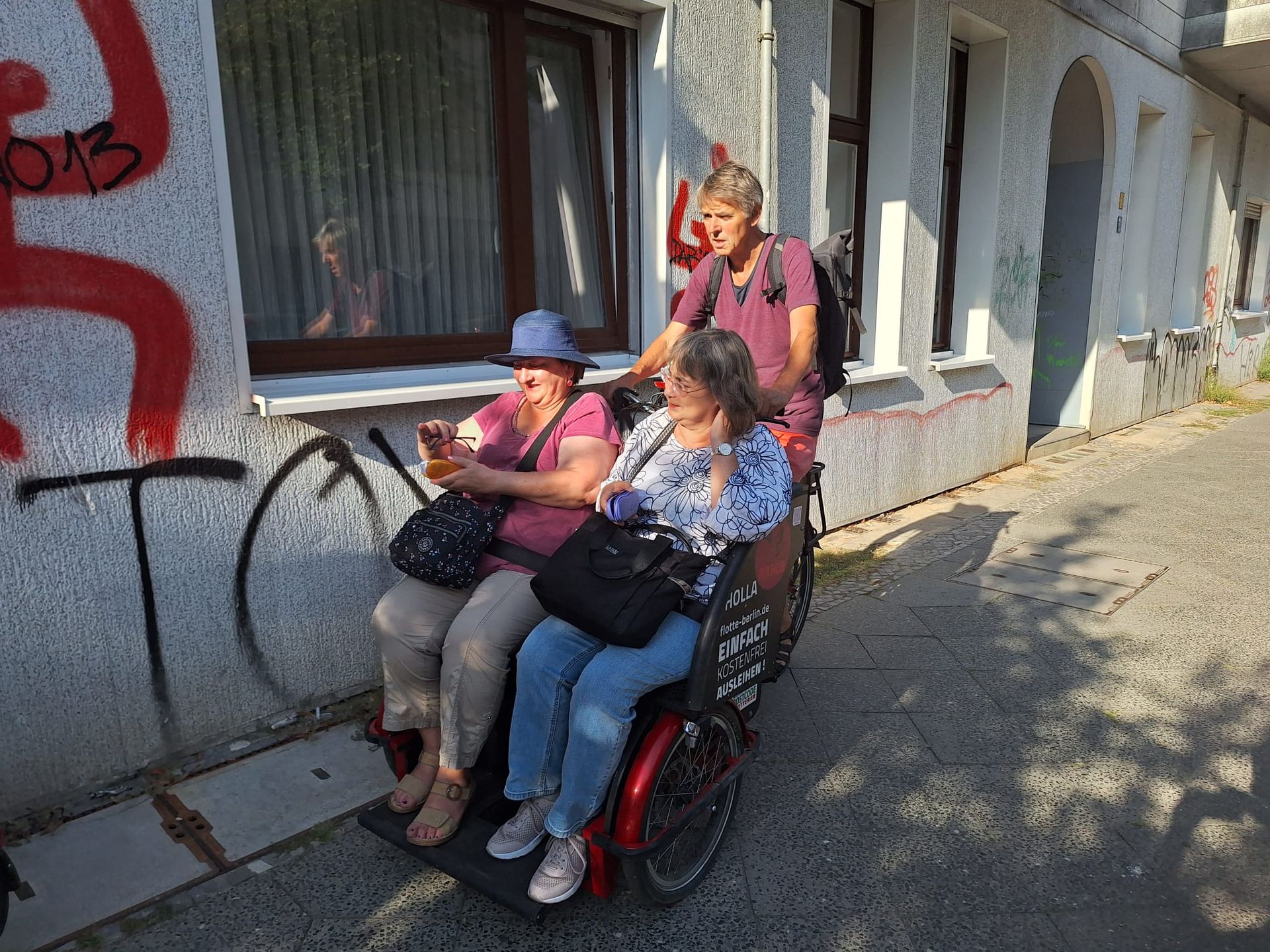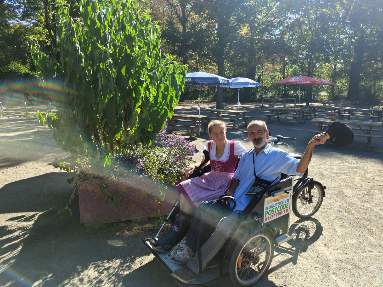 Der Gratulationsdienst Neukölln ist am Start: alles klar für die Rikschatour zum 91.Geburtstag - mit dem Rikscha-Lotsen Fynn am Steuer