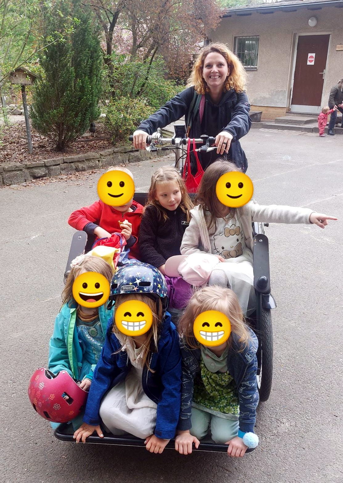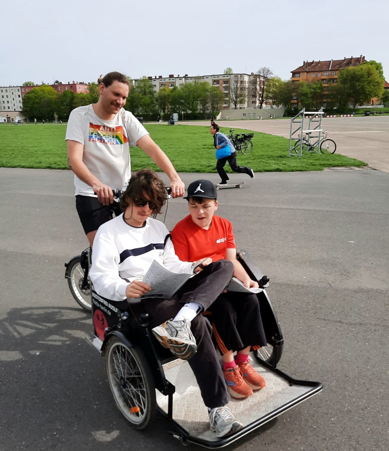 Die jungen Anwohner der Mahlower Straße wissen eine Rikschafahrt zu genießen. Bravo!
